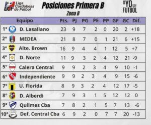 La 10ª fecha de la Zona B del Apertura “Hugo Chiatti” de la Primera B de la LCF será un nuevo capítulo de la lucha encarnizada que llevan adelante entre el líder Deportivo Lasallano (23 unidades) y su escolta Atlético Medea (21).