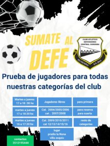 El Club Atlético Defensores Central Córdoba está probando jugadores para conformar los planteles que jugarán los torneos oficiales de la LCF en la segunda parte del año.